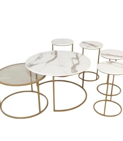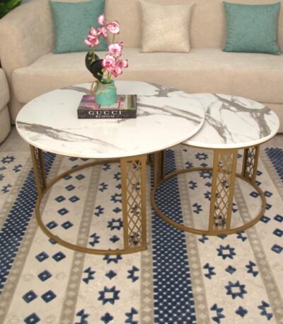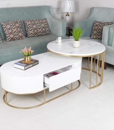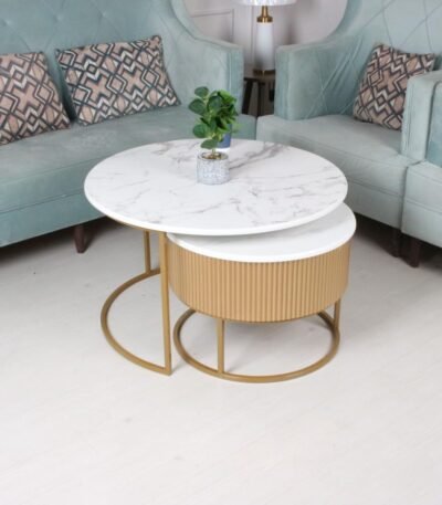 طقم طاولتين لون ذهبي سطح خشب لون أبيض شبيه الرخام