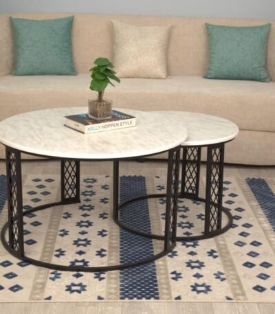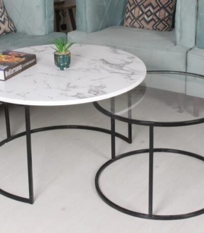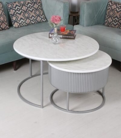 طقم طاولتين سطح خشب لون أبيض شبيه الرخام