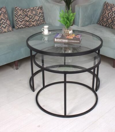 طقم طاولتين تقديم لون أسود سطح زجاج