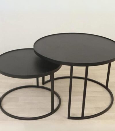 طقم طاولتين تقديم طعام حديد كامل لون أسود