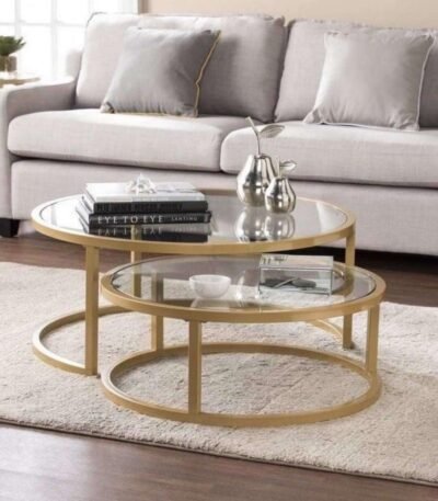 طقم طاوله حديد سطح زجاج لون ذهبي