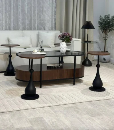 طقم طاوله قهوه مع درج مصممه بشكل عصري وحديث