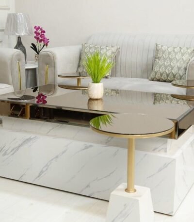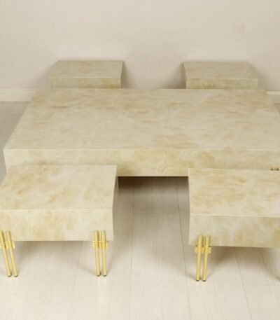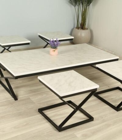 طقم 3 طاولات شبيه الترافينتينو لون بيج