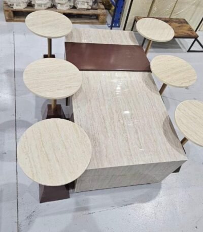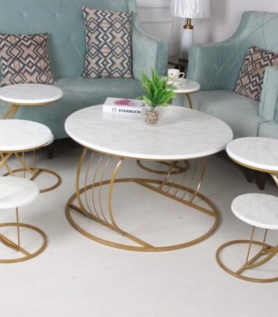 طقم طاولات بديل الرخام 7 قطع – مزيج مثالي بين الأناقة والعملية أضف لمسة من الفخامة والأناقة إلى منزلك مع