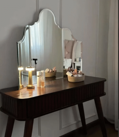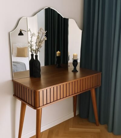 تسريحة خشب مع مرآة هي قطعة أثاث أنيقة وعملية تُستخدم في غرف النوم المقاسات الطول 120 ارتفاع 85 العرض 40