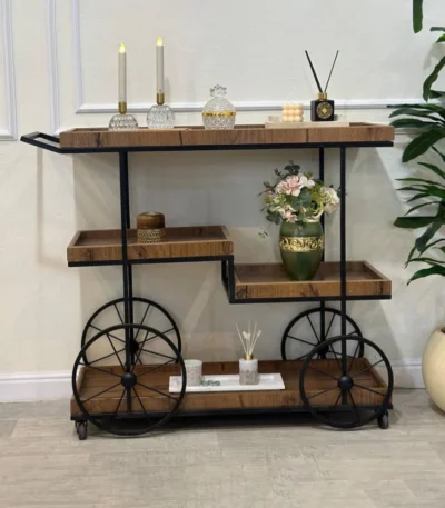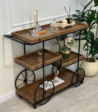 عربيه تقديم حديد سطح خشب