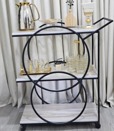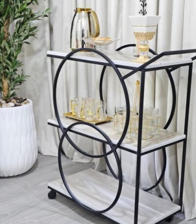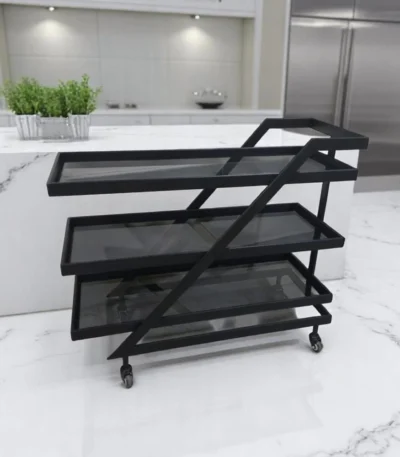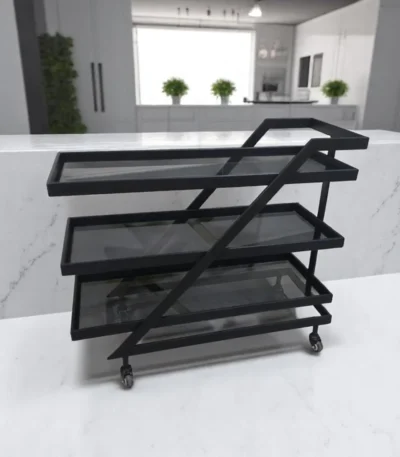 عربية تقديم بهيكل معدني أسود 3 دور مزودة بعجلات للحركة السهلة