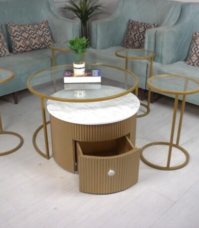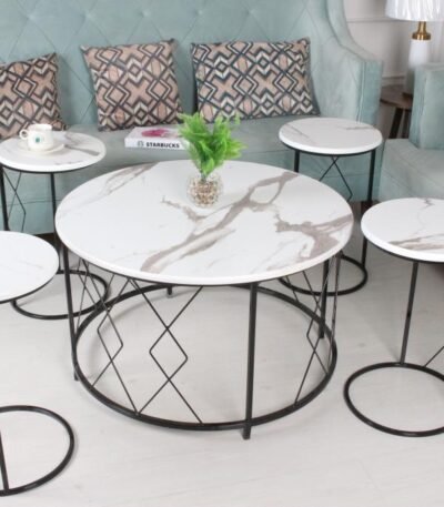 طقم طاولة مودرن مع 4 طاولات خدمة مودرن