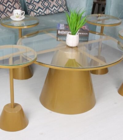 طقم طاولة ضيافة مودرن مع 4 طاولات خدمة مكون من الخشب والزجاج