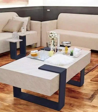 طاولة خدمة خشب طبيعي بسطح بديل رخام
