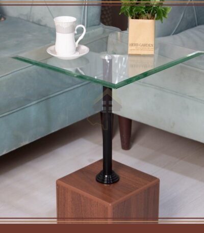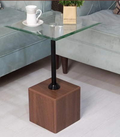 طاولة خدمة خشب بزجاج شفاف