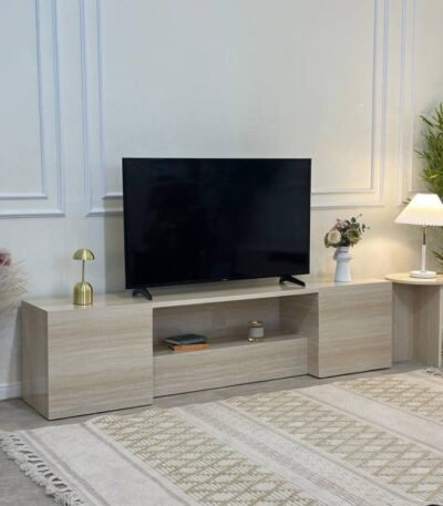 مودرن حديثة من المنزل النادر مصنعة بأفخر أنواع الخشب وبتصميم مميز وفريد ل طاولة التلفزيون يعطي منزلك ديكورا جميلا وحديث طاولة تلفزيون بسطح بديل الرخام وجوانب خشبية