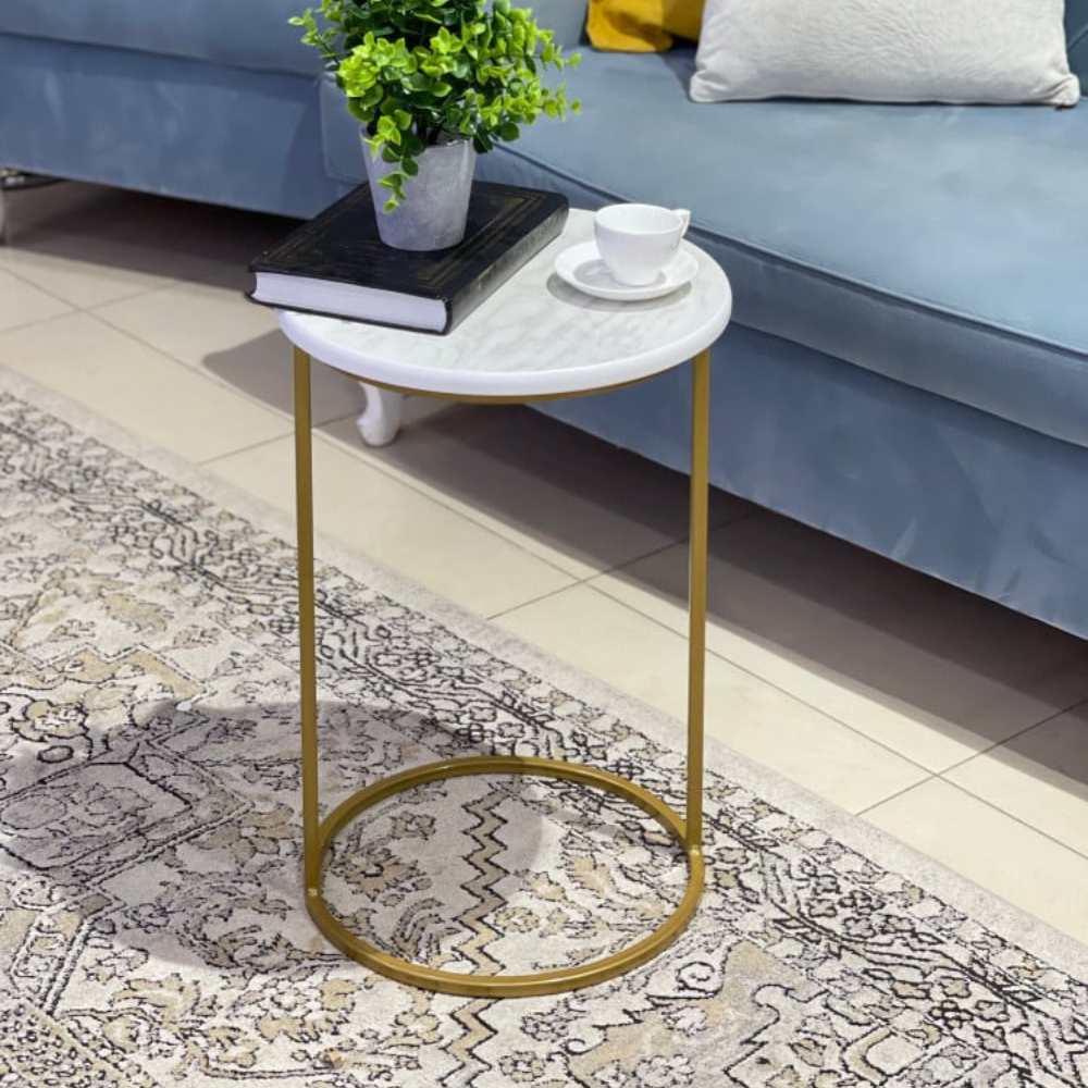 طاول خدمه حديد سطح خشب شبيه الرخام