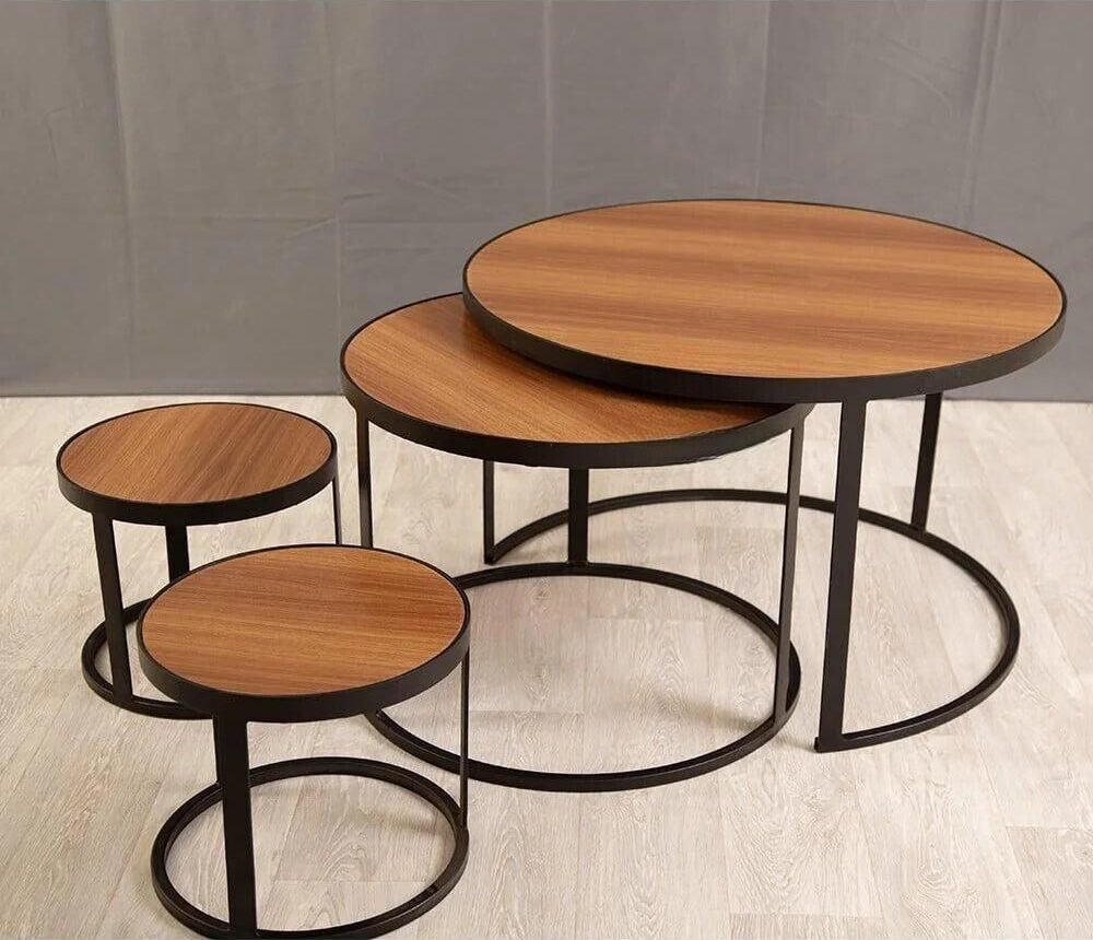 طقم طاولة تقديم قاعدة حديد والسطح خشب 4 حبة طقم