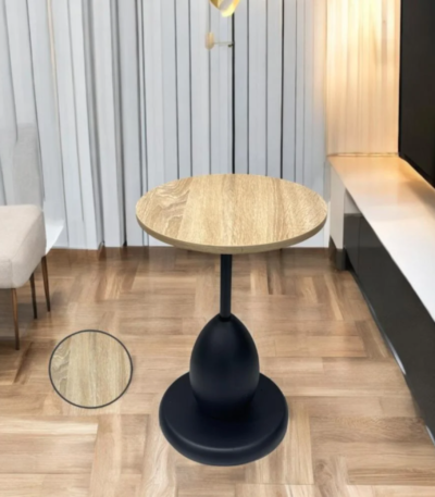 طاولة خدمة قواعد حديد لون أسود سطح خشب بني فاتح
