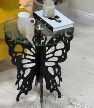 طاوله خدمه حديد سطح زجاج شكل فراشه منتج حصري